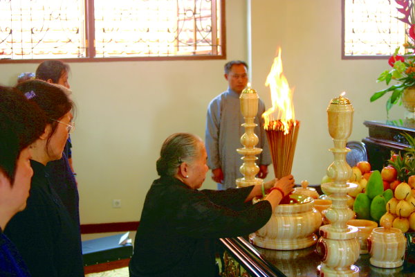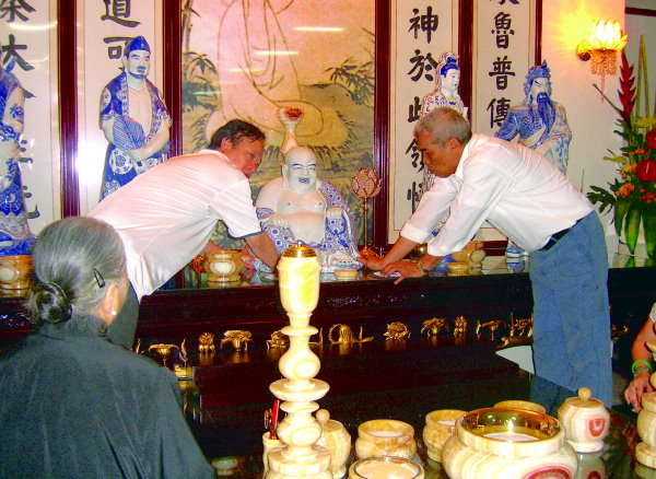 開光後的第二天,前人慈悲安排了餘興節目─峇里島一天遊,到了一間廟宇,看到信徒們一家大小,一一走入水池中,雙手合十,虔誠的讓流下之水柱沐頭,沐身,後學當時在想,讓他們的虔誠禮敬一一帶引入佛堂就好了。