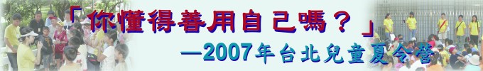 沙拉斯特說:「每個人都是自己命運的建築師。」,這次活動以活潑方式呈現,教導孩子做任何事情,不要一直等明天,要把握今天、把握現在、把握當下;並讓孩子知道自己的重要性,珍惜自我與瞭解自我,今年的夏令營主題「你懂得善用自己嗎?」上了三個課程,分別為愛惜光陰、自動自發、生活與我,很貼切現在的生活問題,在知識與網路發達下,小朋友是不是還知道自己原本應該做的本分,懂得利用自己身上該有東西及物品,我相信很多人都把時間浪費在不該浪費的事物,把握時間做最有意義的事,不但可以得到實質效果也不必讓父母擔心,你說是嗎?